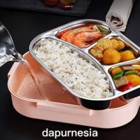 Tak perlu microwafe untuk menghangatkan makanan. Anda dapat mengisi bagian bawah kotak makan dengan air panas untuk menghangatkan makanan di atasnya. Cara yang sangat mudah untuk menikmati makanan hangat.