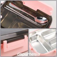 Anda akan mendapatkan sendok dan sumpit yang dapat diletakkan di atas tutup kotak makan. Tempat sendok dan sumpit juga dapat Anda fungsikan sebagai stand handphone. Anda pun dapat menikmati sesi makan siang sambil menonton tayangan kesukaan.