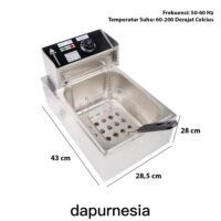 Mesin penggorengan ini biasa digunakan di restoran ataupun tempat makan, untuk menggoreng kentang, daging dan bahan makanan lainnya dengan cepat dan merata. Bagi Anda yang ingin buka usaha makanan yang menggunakan gorengan maka harus memiliki alat ini.