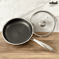 Wajan VCLAD ini didesain khusus untuk memasak / menggoreng makanan apa pun mulai dari ayam hingga daging serta membuat tumisan, sampai grilling. Wajan ini dibuat menggunakan bahan Stainless Steel SUS 316/304 yang kuat dan anti karat serta dilapisi dengan teknologi honeycomb laser German, membuat proses menggoreng Anda lebih menyenangkan tidak lengket