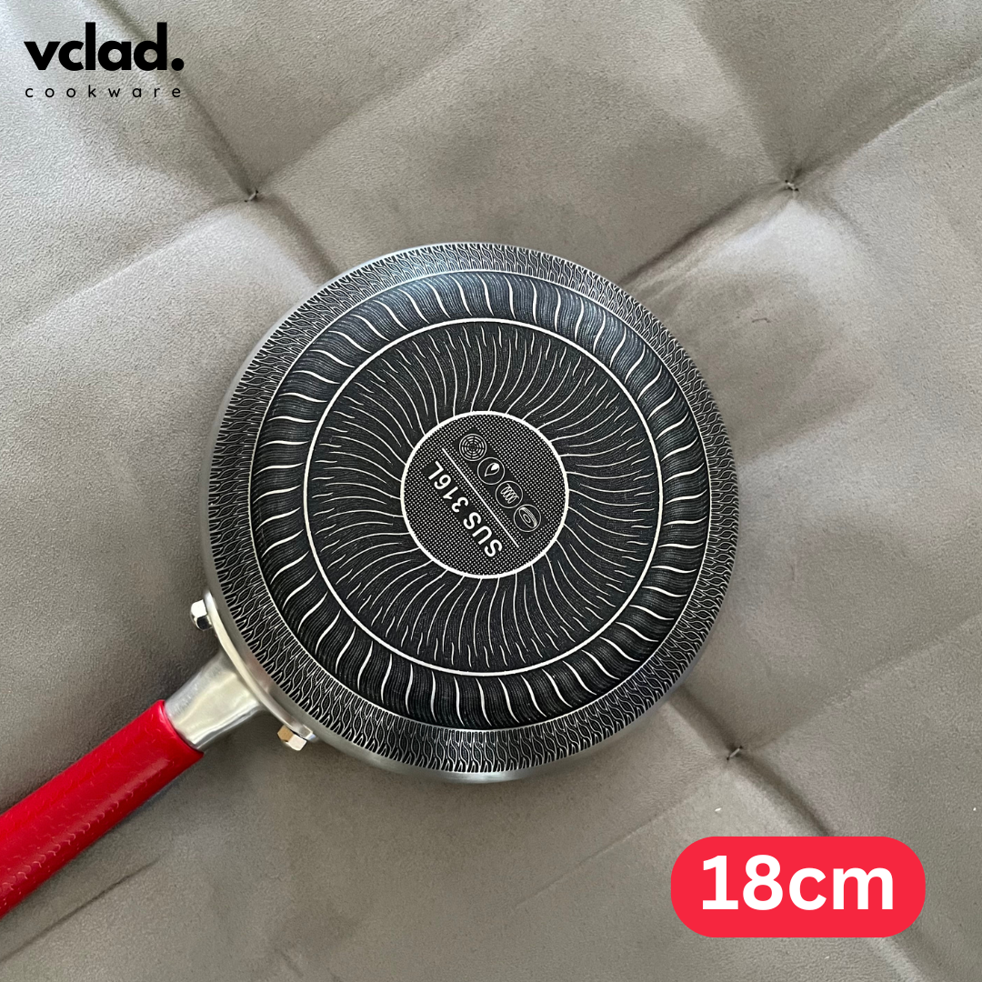 Wajan VCLAD ini didesain khusus untuk memasak / menggoreng makanan apa pun mulai dari ayam hingga daging serta membuat tumisan, sampai grilling. Wajan ini dibuat menggunakan bahan Stainless Steel SUS 316L yang kuat dan anti karat serta dilapisi dengan teknologi honeycomb laser German, membuat proses menggoreng Anda lebih menyenangkan tidak lengket